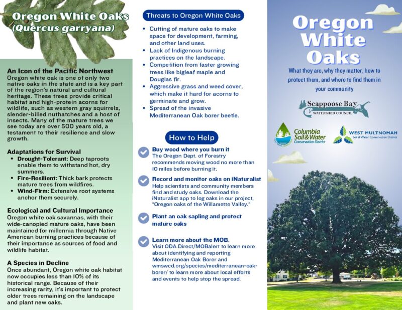 Oregon White Oaks in Our Area By WMSWCD Admin | November 20, 2025 Download Preview File Type: pdf Categories: Habitats & Biodiversity, Native Species, Publications, Rural Conservation